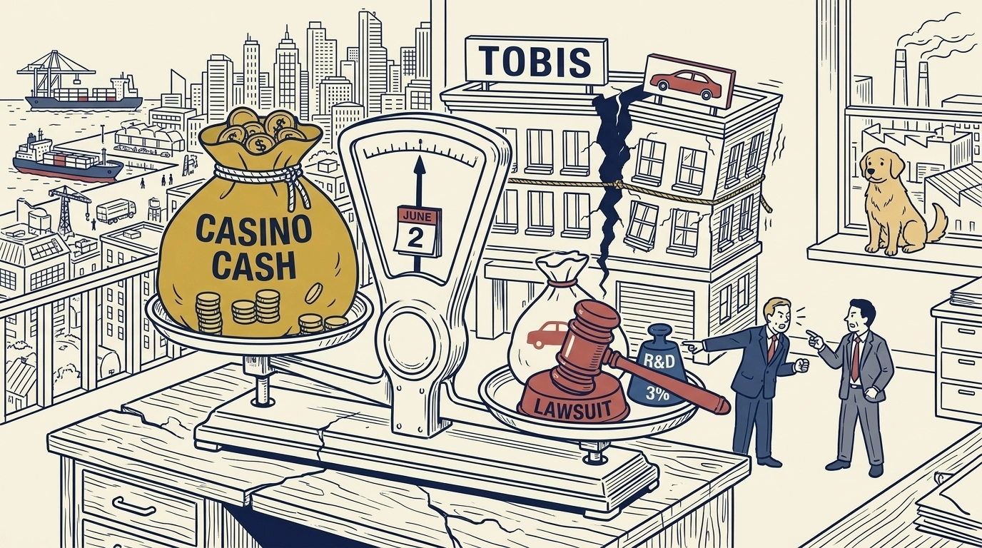 토비스가 인적분할 주주총회를 앞두고 정정 증권신고서를 제출해 6억 6,600만 원과 50만 달러 규모의 손해배상 청구 소송이 추가되었음을 밝혔습니다. 또한 신설 전장법인인 네오뷰의 연구개발(R&D) 투자 목표치를 기존 매출 대비 4% 이상에서 3% 이상으로 낮추며 보수적인 경영 기조로 돌아섰습니다. 분할 이후 네오뷰는 기존 카지노 사업의 현금 지원을 받을 수 없어 외부 자금 조달에 의존해야 하며, 이에 따른 자금난 리스크가 존재합니다. 아울러 최대주주 지분율이 11.0%에 불과해 3년 뒤 우호 주주와의 공동행사 확약이 끝나면 경영권 변동 위험에 노출될 수 있다는 점도 약점으로 꼽힙니다. 토비스는 오는 6월 2일 주주총회에서 인적분할을 결정하고 7월 20일 재상장할 예정인 가운데, 새롭게 드러난 잠재적 리스크들이 주주들의 표심에 어떤 영향을 미칠지 주목됩니다.
