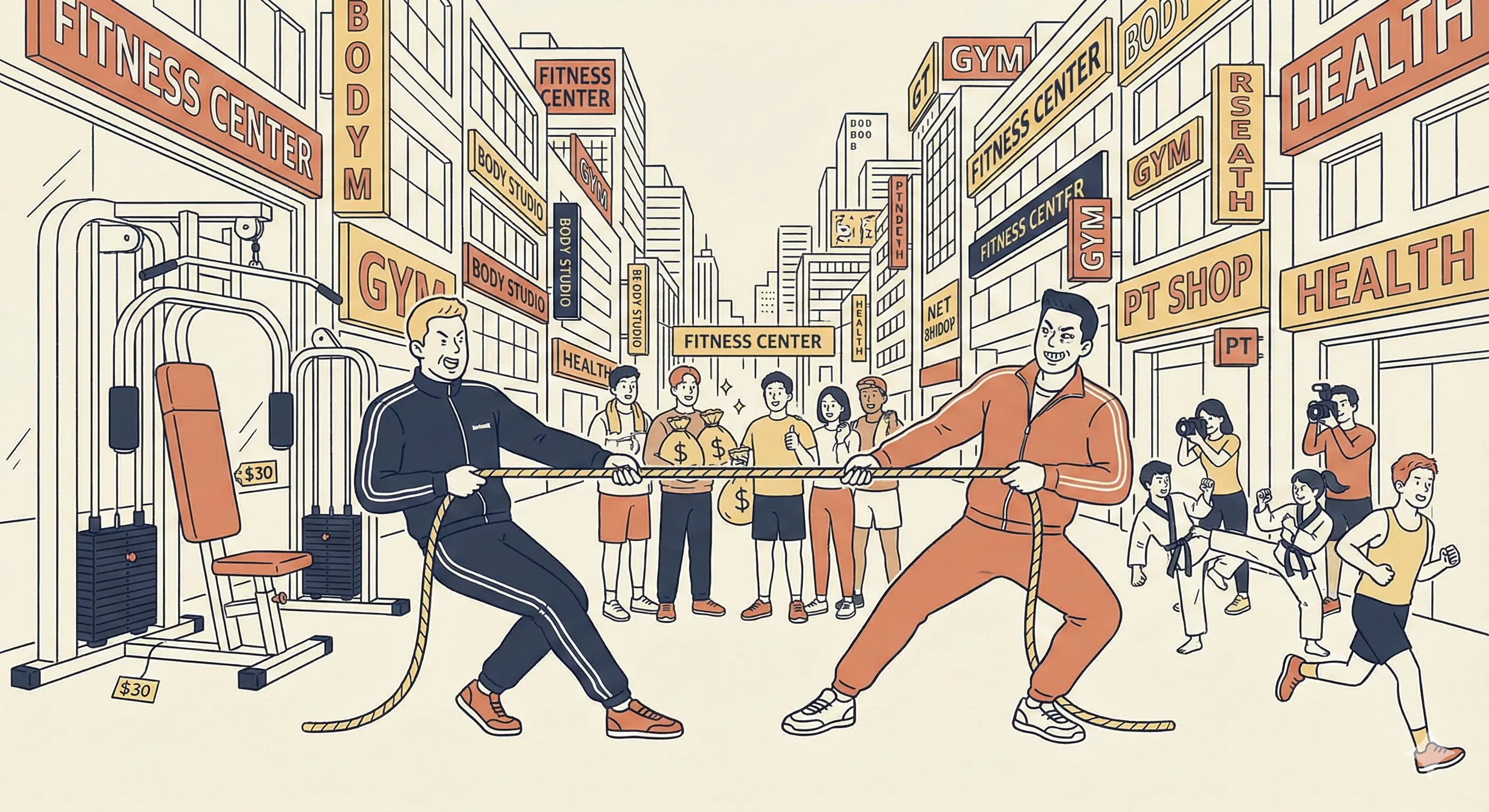 ◇ 5억 투자해 3만 원 받는다... ‘고비용 저효율’의 늪 현재 피트니스 시장은 전형적인 ‘레드오션’의 양상을 보인다. 소비자의 눈높이는 높아져 대당 1,000만 원이 넘는 해외 명품 머신(파나타, 해머스트렝스 등)이 필수 요소가 되었고, 이로 인해 창업 비용은 5억~10억 원대로 폭등했다. 반면, 치열한 출혈 경쟁 탓에 월 회비는 20년 전 수준인 3만~5만 원대에 머물거나 오히려 하락했다.