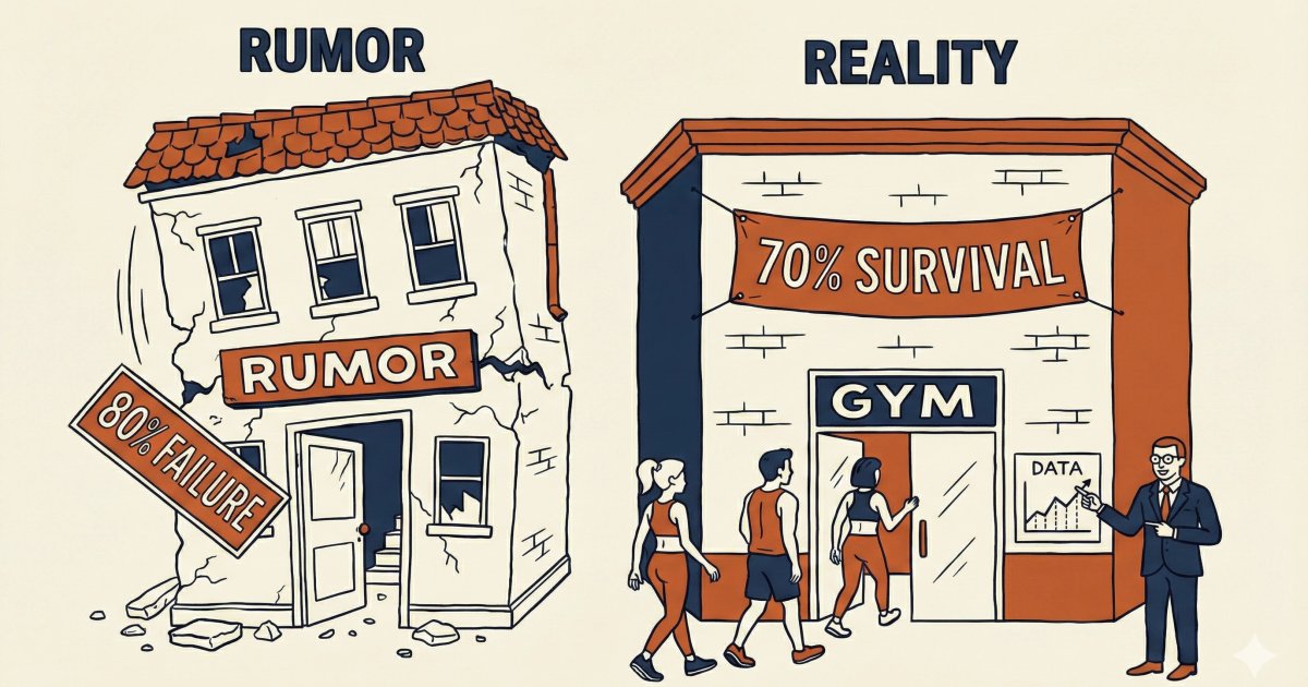 이는 상대적으로 안정적이라 평가받는 체육도장(태권도 등)의 35~38%보다 낮은 수준으로, 헬스장이 '폐업의 무덤'이라는 인식은 통계적 착시임이 증명됐다.