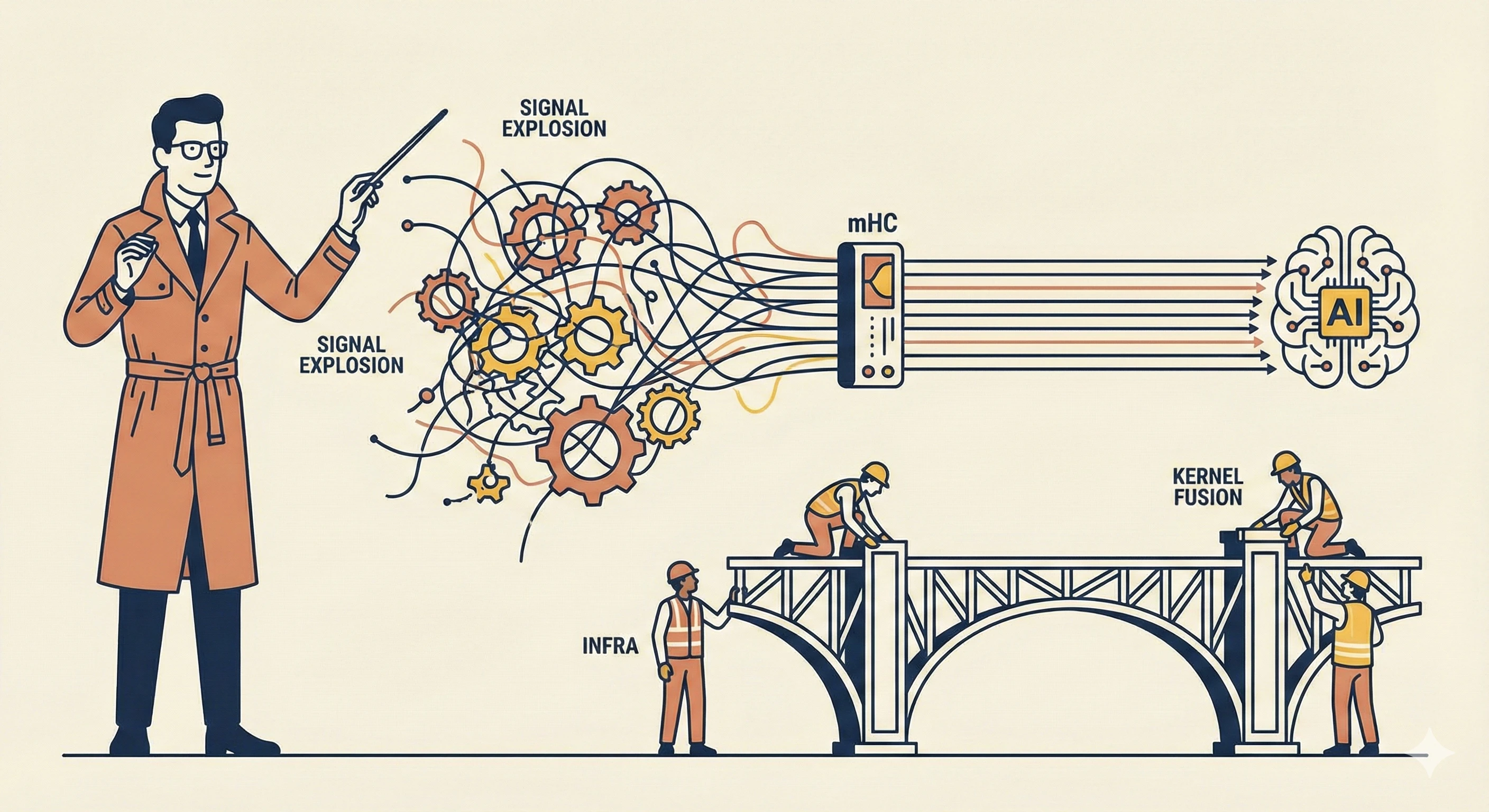 기존 '하이퍼 커넥션'의 신호 폭증 문제, '이중 확률 행렬' 투영으로 해결 시스템 과부하 막는 '커널 융합' 등 인프라 기술 결합... 27B 모델서 검증