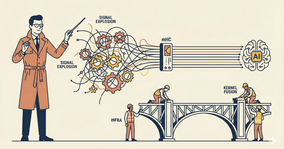 중국의 AI 기업 딥시크(DeepSeek)가 대규모 언어 모델(LLM)의 고질적인 문제인 '학습 불안정성'과 '메모리 병목 현상'을 동시에 해결할 수 있는 새로운 아키텍처 기술 'mHC(Manifold-Constrained Hyper-Connections)'를 공개했다. 이 기술은 AI 모델 내부의 정보 흐름을 수학적으로 정교하게 제어해, 모델의 덩치를 키우면서도 연산 효율성을 극대화한 것이 특징이다.