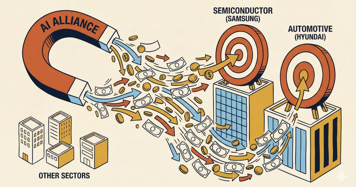 ![[R&E] AI 동맹이 그리는 돈의 지도: 반도체·자동차 '혈맹'과 수급의 거대한 쏠림](https://d1gl51xbrxoj65.cloudfront.net/uploads/2026/01/12/1768189397184-gfbj1c.webp)