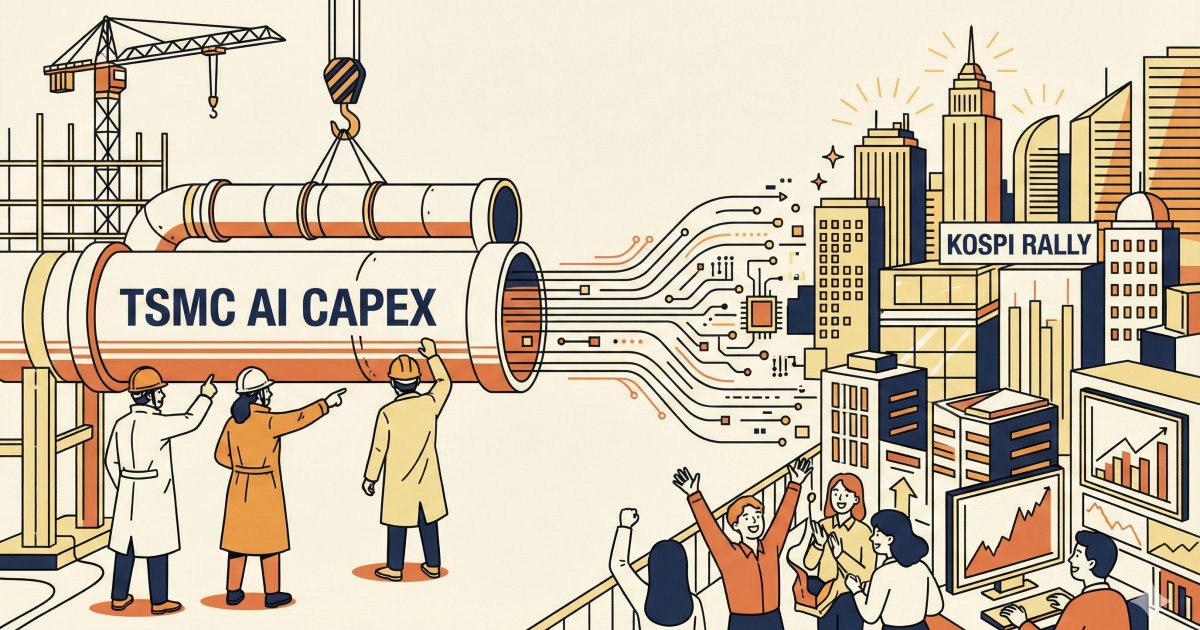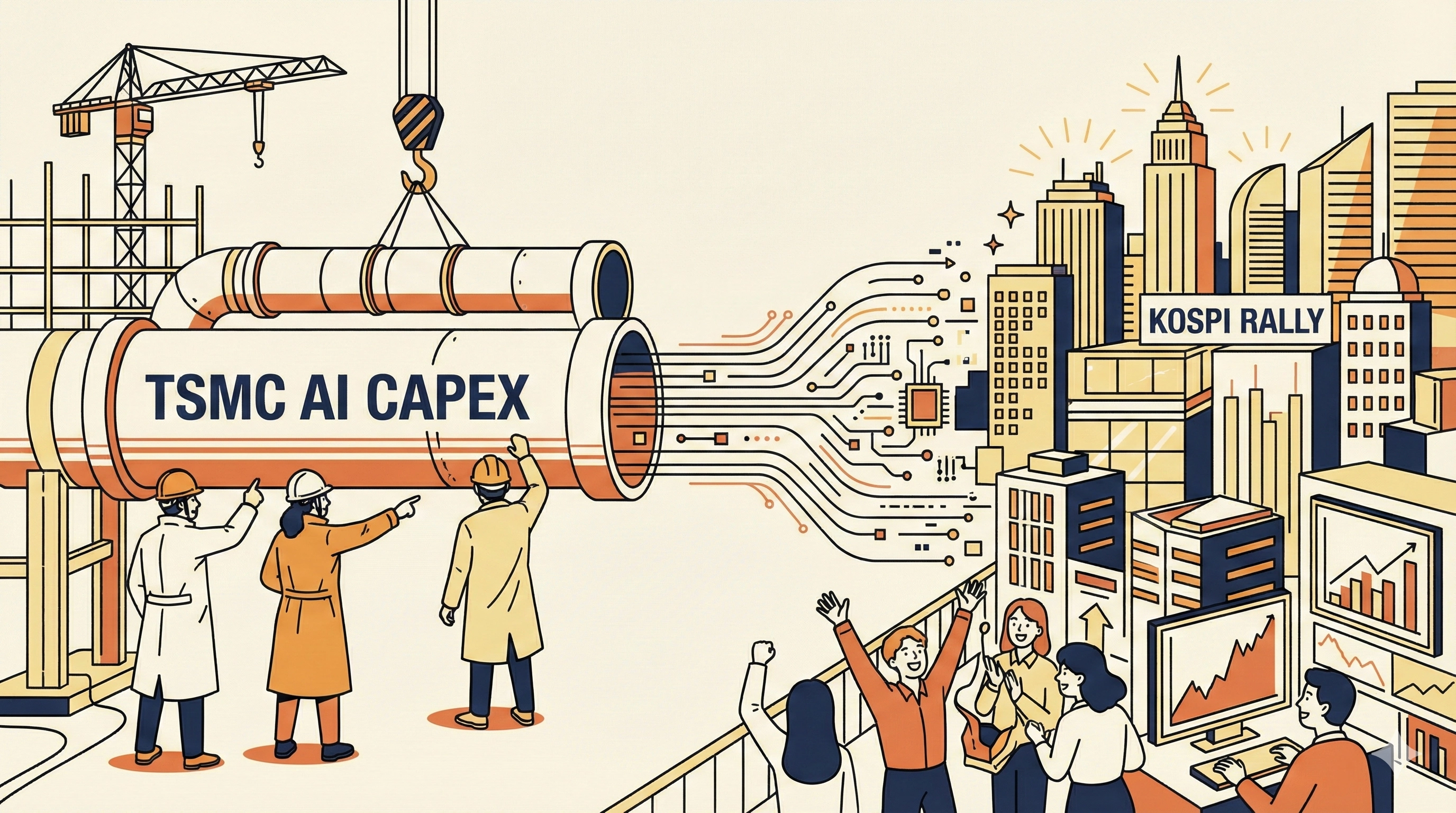 ![[R&E] TSMC의 사상 최대 CAPEX 선언, KOSPI 10일 연속 신기록 랠리 견인: AI 인프라발 순환매 주목](https://d1gl51xbrxoj65.cloudfront.net/uploads/2026/01/16/1768523584007-wh4fw.webp)