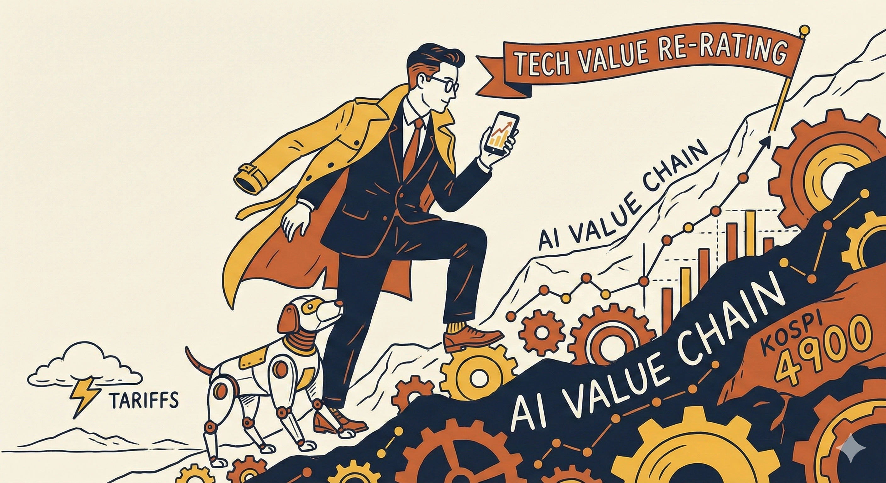 금일은 글로벌 관세 위협이라는 단기적 매크로 불확실성에 직면하며 시장 전반의 변동성이 확대될 가능성이 존재한다. 다만, 직전 거래일 시장이 대형주 중심의 외국인 수급을 바탕으로 4,900선에 안착한 점은 국내 증시의 체질 개선이 구조적 성장 테마를 중심으로 이루어지고 있음을 방증한다.