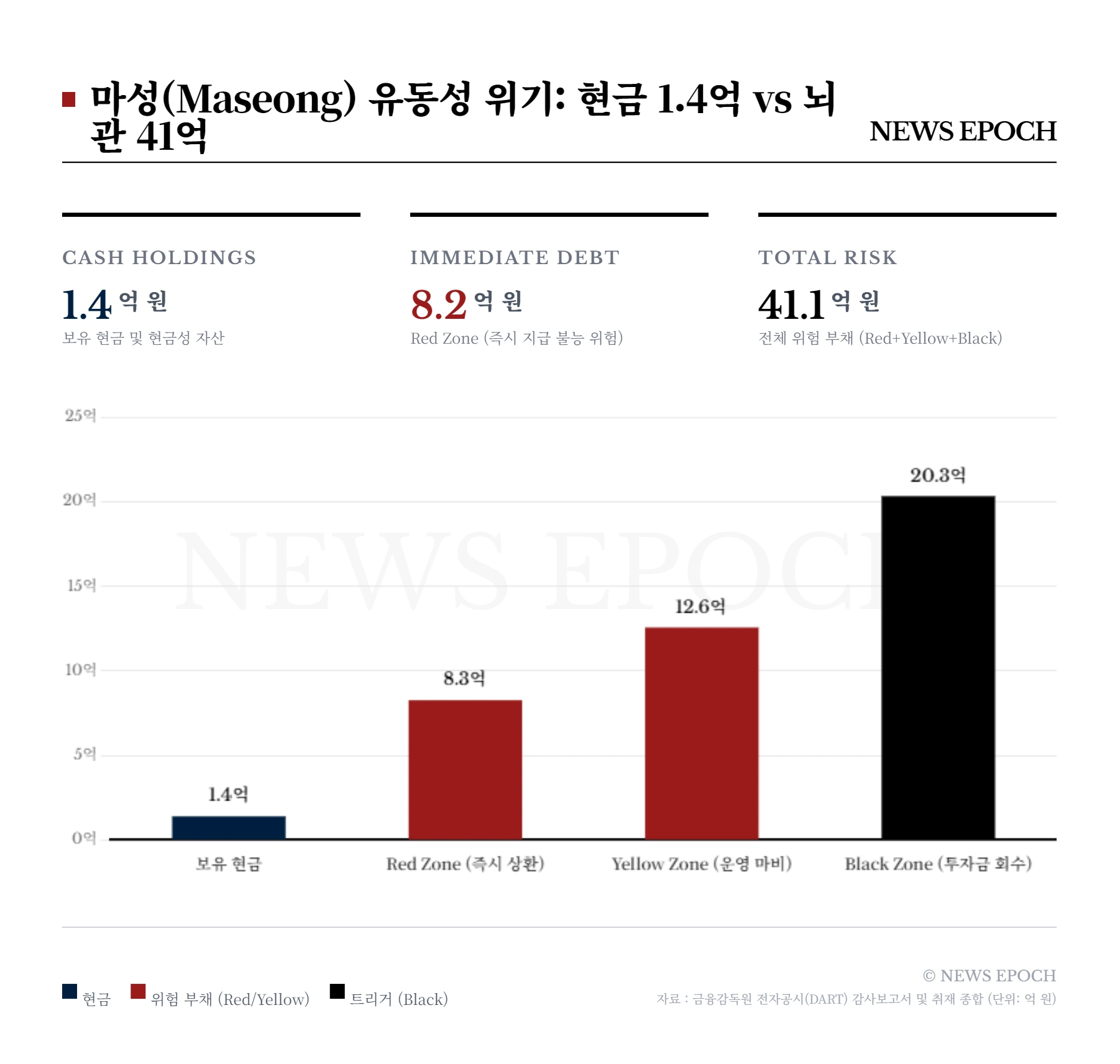 순수 지분 투자(Equity)라면 회사가 어려울 때 배당을 하지 않아도 문제가 없지만, 부채 성격(Debt)의 자금은 다르다. 재무 건전성이 악화되자 투자자들은 ‘기한이익 상실(EOD)’ 조항을 근거로 조기 상환을 압박했을 가능성도 있다. 기한이익상실 조항이 아니더라도 부채 성격의 자금은 언젠가는 갚아야 할 돈이고, 이런 유형의 자금인 20억 원 앞에서 1억 4천만 원의 현금 보유고는 무용지물이었다.