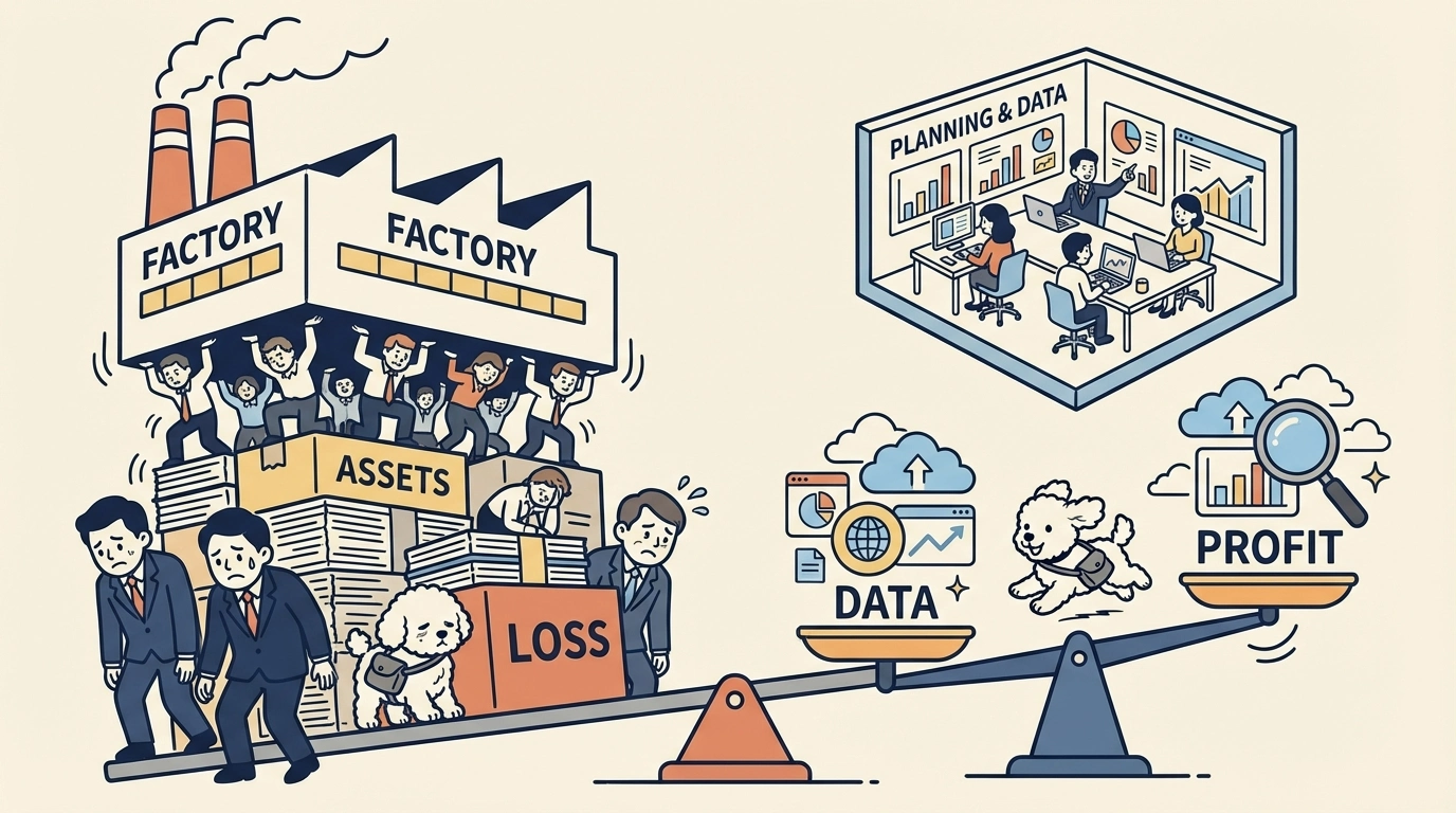반면 '조선미녀'를 만든 구다이글로벌은 2024년 12월 기준 단 63명의 직원이 1,406억 원의 영업이익을 냈다. 1인당 생산성은 무려 22억 3,000만 원에 달한다. 아모레퍼시픽 직원 80명이 해야 할 몫을 구다이글로벌 직원 1명이 해낸 셈이다. 이 압도적인 효율성의 차이는 '공장의 유무'에서 비롯됐다. 구다이글로벌은 공장을 짓지 않고 모든 생산을 외주화(ODM)하여 제조 원가를 변동비 구조로 전환했다. 대신 상품 기획과 데이터 분석에 핵심 역량을 집중함으로써 소수 정예 인력으로도 막대한 부가가치를 창출했다.