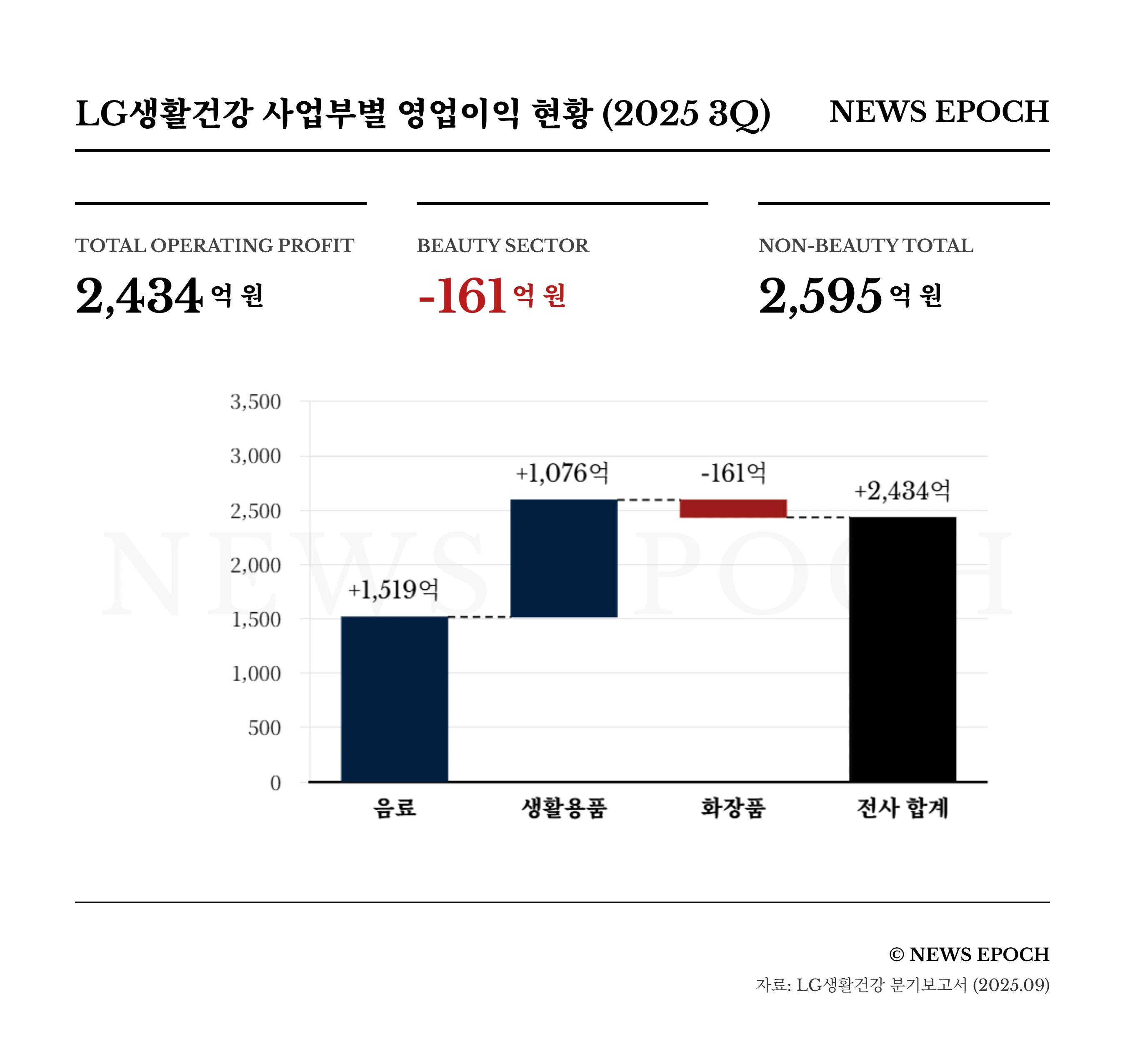 LG생활건강 역시 2025년 3분기 누적 기준, 뷰티 사업부에서 161억 원의 영업손실을 기록했다. '후' 브랜드의 중국 매출 부진과 북미 시장 확장을 위해 인수한 '더 에이본(The Avon Company)'의 경영난이 겹친 탓이다. 화장품 사업이 적자로 돌아서면서 전사 실적을 방어한 것은 다름 아닌 음료 사업부였다. 코카콜라 등으로 벌어들인 1,519억 원의 흑자가 없었다면 LG생활건강은 전사적 적자 위기에 직면했을 것이다. 화장품 회사가 음료 부문의 이익으로 사업을 유지하는 수익 구조가 지속되고 있다.