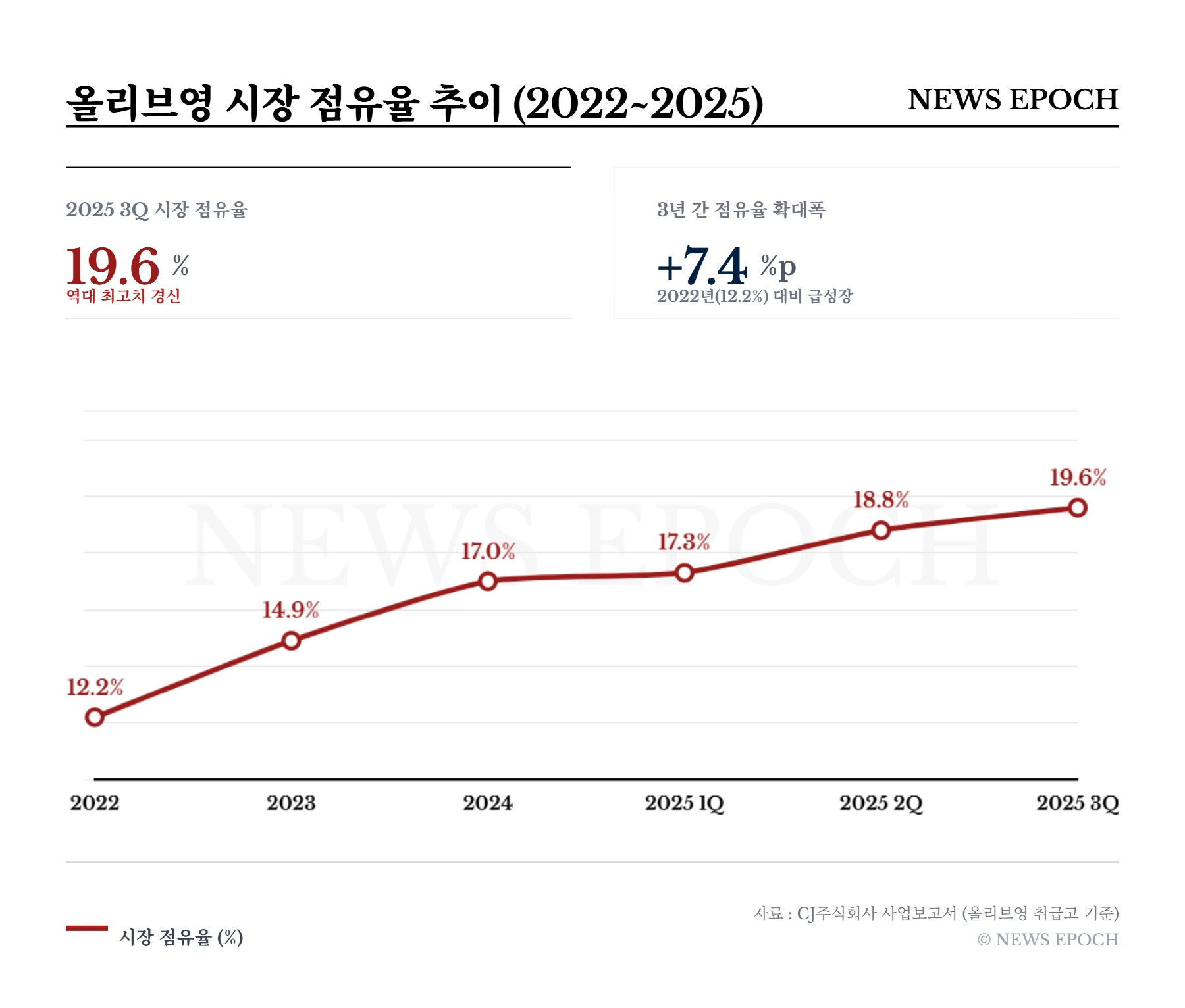 이러한 지배력은 2025년 들어 더욱 공고해지고 있다. 2022년 12.2%였던 뷰티 시장 점유율은 2025년 3분기 기준 19.6%까지 치솟았다. 전체 뷰티 시장 5분의 1이 올리브영이라는 단일 채널에서 움직이는 셈이다. 왓슨스, 롭스 등 과거 드럭스토어 경쟁사들이 퇴장한 자리를 올리브영이 완전히 장악하며, 데이터는 이 압도적인 지배력이 어떻게 브랜드사의 마진을 잠식하고 그 결실이 누구의 주머니로 들어가는지를 냉정하게 시사한다.