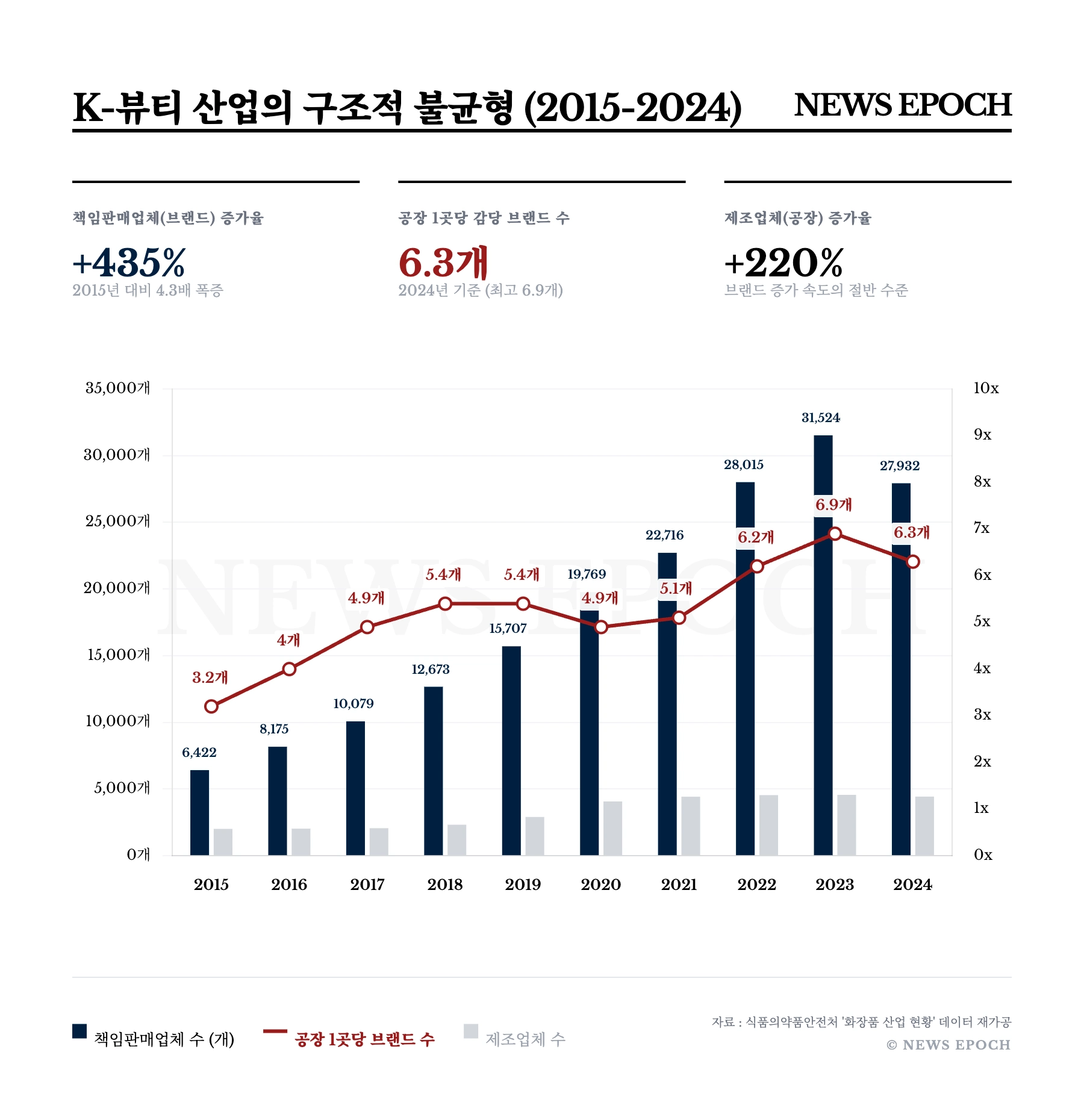 지금의 K-뷰티 호황은 철저히 ODM 시스템에 기반하고 있다. 아이디어와 마케팅 능력만 있다면 공장 없이도 화장품 CEO가 될 수 있는 시대다. 이는 제조와 판매의 기능이 철저히 나뉘는 이른바 '제판분리(製販分離)'를 가속화했다. 브랜드사가 소비자 경험과 시장 개척에 주력하는 효율적 분업 시스템이 정착된 이면에는, 제조사의 막강한 기술적 장악력이 자리 잡고 있다. 실제로 제품의 핵심인 처방과 생산 설비, 품질 관리 데이터까지 모두 ODM사가 소유한다. 브랜드사는 마케팅 권한을 갖지만, 제품의 '물리적 실체'와 '원천 기술'은 제조사가 쥐고 있는 구조다. 이러한 구조적 특성 덕분에 ODM사는 단순한 하청 업체를 넘어섰다. 브랜드의 성공이 곧 제조 물량 확대로 이어지는 선순환 구조 속에서, ODM사는 개별 브랜드의 흥망성쇠와 무관하게 K-뷰티 시장의 성장을 가장 안정적으로 향유하는 '핵심 인프라'이자 플랫폼으로 자리 잡았다.