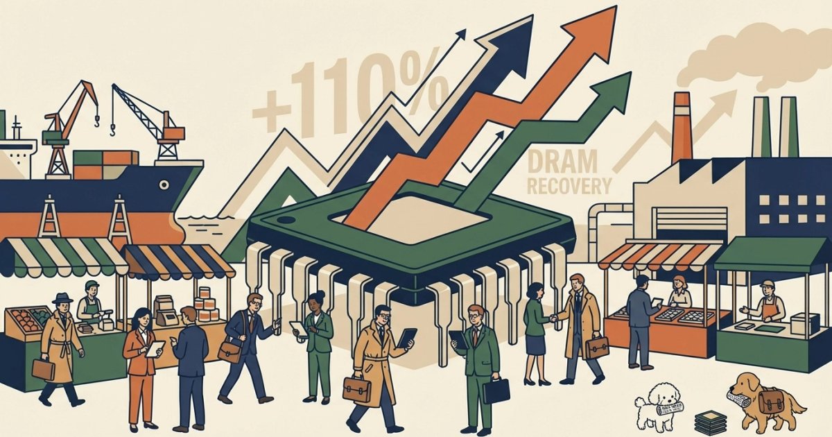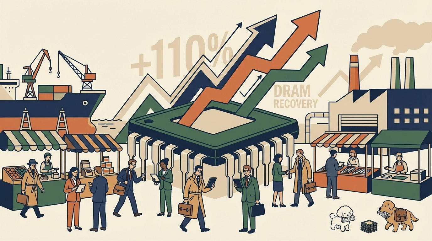 DRAM 가격 상승세 심화: 2026년 1분기 PC DRAM 고정가는 전분기 대비 최대 110% 상승할 것으로 전망되며, 이는 메모리 반도체 업황의 강력한 구조적 회복을 시사한다.