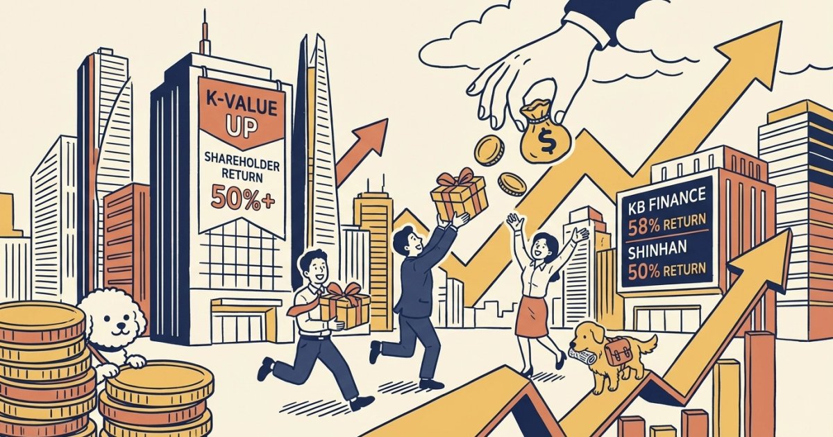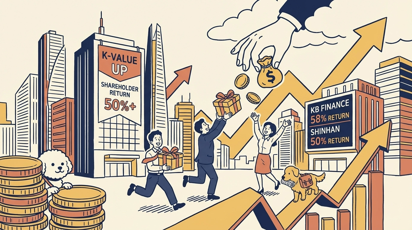 금융 섹터는 정부의 'K-밸류업' 정책 추진과 맞물려 강력한 주주환원 정책을 발표하며 시장 주도권을 확보했다. KB금융 (105560)은 4분기 순이익이 시장 예상치를 23% 상회하는 호실적을 바탕으로 내년 상반기 자사주 매입에 1.2조 원을 투입하는 계획을 발표했으며, 2026년 추정 총 주주환원율 58%를 제시하며 업계 최고 수준의 환원 의지를 피력했다. 신한지주 (055550) 역시 2025년 총 주주환원율 50%를 조기 달성했으며, 2026년 배당을 14.3% 증액하고 7,000억 원 규모의 자사주 매입 계획을 밝혀 적극적인 밸류업 노력을 지속하고 있다. 배당 분리과세 충족을 위해 감액배당 방식 등을 추진하는 점도 주목할 만하다. 지방 금융지주인 JB금융지주 (175510)까지 목표 주주환원율을 50%로 상향하며 금융 섹터 전반에 걸쳐 '주주환원 50% 시대'가 개막했다는 분석이다.