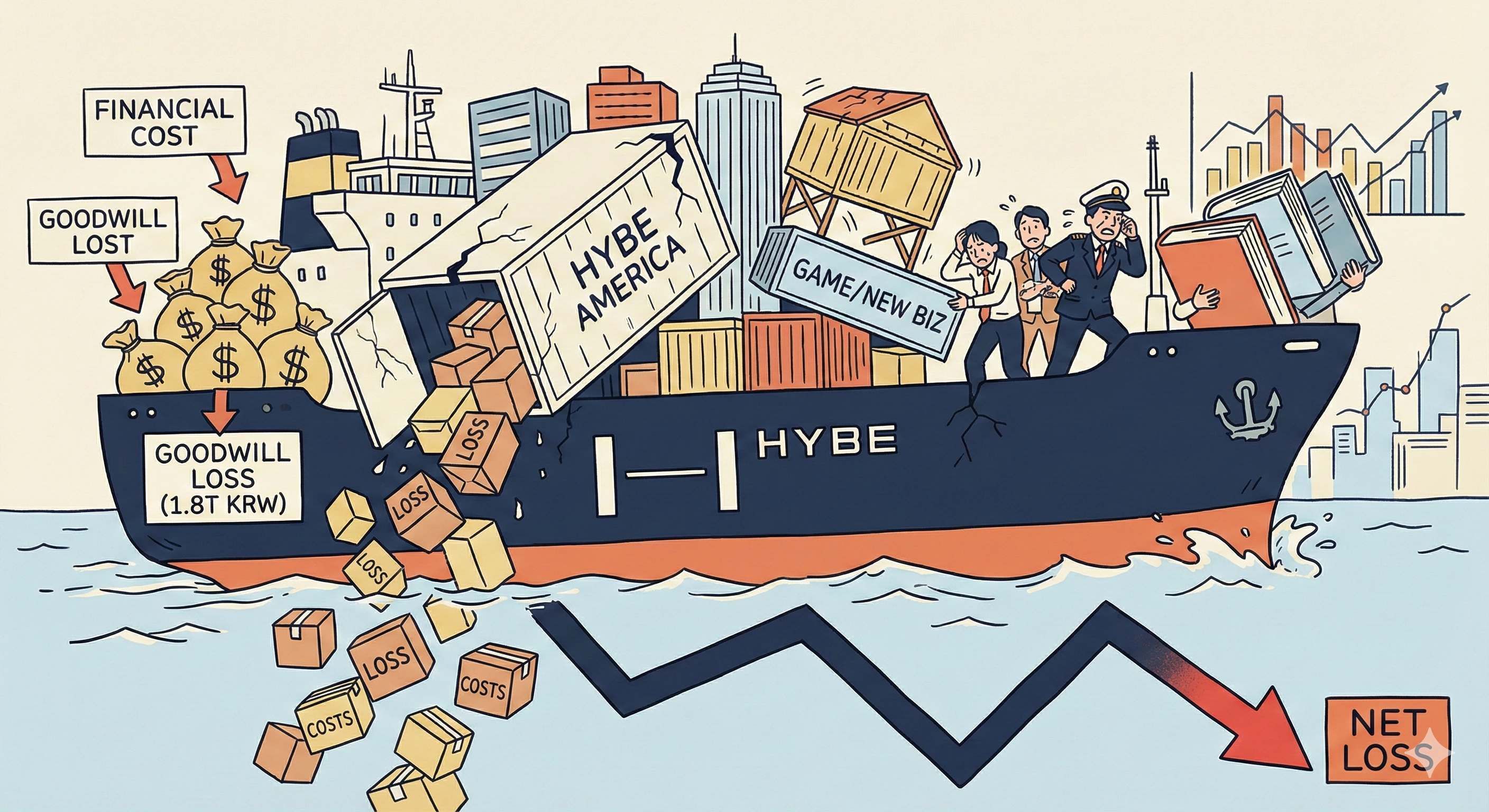결국 창사 이래 첫 당기순손실 전환은 단순한 일회성 실적 부진이 아니라, 누적된 재무적 부담이 회계 장부에 본격적으로 반영되기 시작한 결과다. 이는 하이브에게 외부 자본으로 불린 덩치를 실제 내부 이익으로 전환할 수 있는지, 나아가 '사는(Buy)' 능력을 넘어 거대해진 글로벌 조직을 '경영하는(Manage)' 능력을 시장에 증명해야 하는 중대한 시험대가 되고 있다.