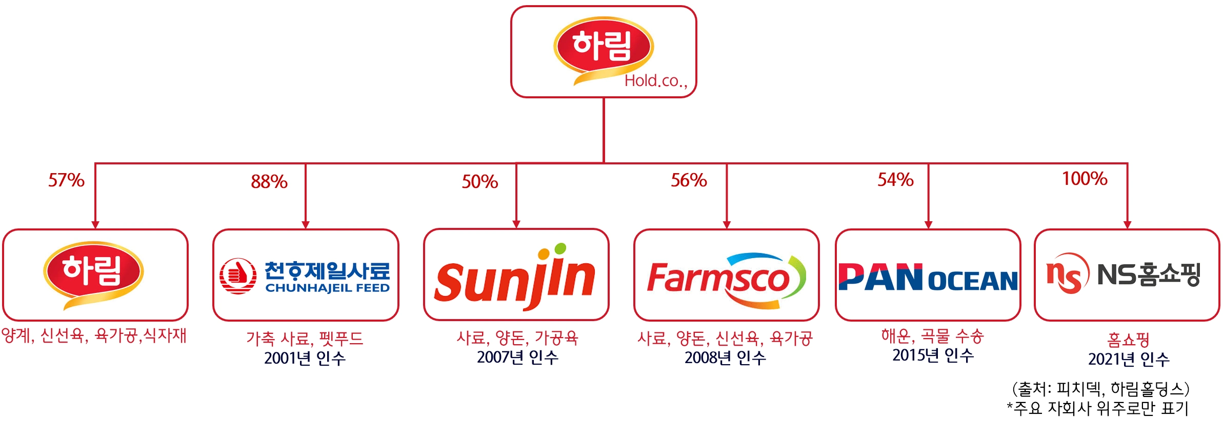 마진이 박한 육류 유통 산업에서 살아남고 큰 수익을 낸 기업들은 예외 없이 '수직적 확장'을 택했다. 예를 들어 닭고기로 유명한 하림은 사료(팜스코)-축산-도축-가공-유통을 넘어 물류(팬오션)와 홈쇼핑 채널까지 아우르는 완벽한 수직 계열화를 이뤄내며 원가를 절감했다. 선우프레시 역시 원육 수입부터 육가공, 가정간편식(HMR), B2B, 오프라인 정육점 프랜차이즈까지 위아래로 가치사슬을 장악하며 4,900억 원대 기업으로 성장했다.