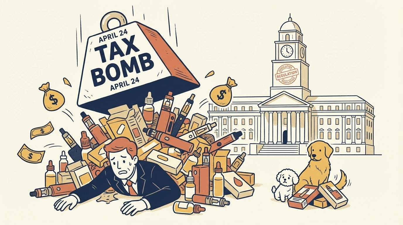 오는 4월 24일부터 액상형 전자담배에 사용되는 '합성니코틴' 제품이 법적으로 '담배'에 포함되며 대대적인 과세와 강력한 규제가 시작된다. 그동안 법망을 피해 폭발적으로 성장해 온 전자담배 시장에 제동이 걸릴 것으로 예상되는 가운데, 세금 폭탄을 앞두고 업계의 도 넘은 사재기 조장 행위가 도마 위에 오르고 있다.