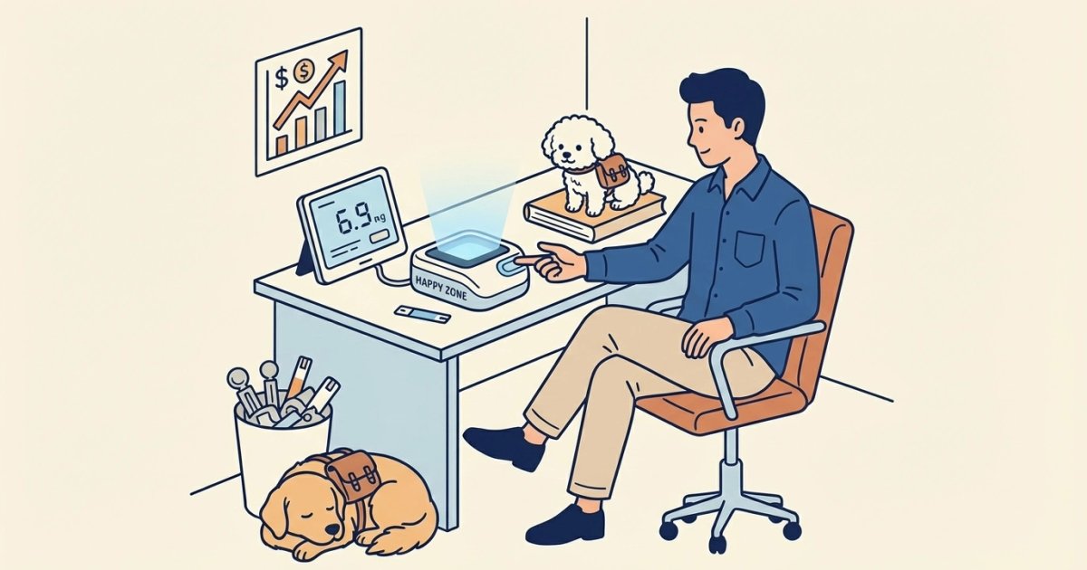 8년의 연구 끝에 탄생한 '해피존'은 손가락을 넣고 수십 초만 기다리면 혈당이 측정되는 혁신적인 기기다. 단순히 빛을 쏘는 것을 넘어, 특정 파장의 LED 광원을 조사해 혈류의 흐름을 읽는 광혈류량 측정(PPG) 기술과 빛의 광학적 특징을 분석하는 분광학 기술을 융합했다.
