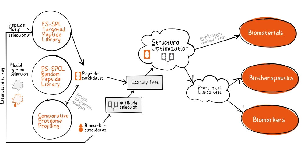 회사는 펩타이드 라이브러리 기술을 기반으로 염증해소 수용체인 'FPR2'를 선택적으로 활성화하는 기능성 펩타이드를 개발, 이를 '펩티로이드(PEPTIROID)'라 명명했다. 질병의 근본 원인을 해결하는 챔피언 치료제가 없어 미충족 의학적 수요(Unmet medical needs)가 매우 높은 아토피 피부염, 안구건조증, 건선, 류마티스 관절염, 궤양성 대장염 등 복잡한 면역-매개 염증질환이 주요 타깃이다.