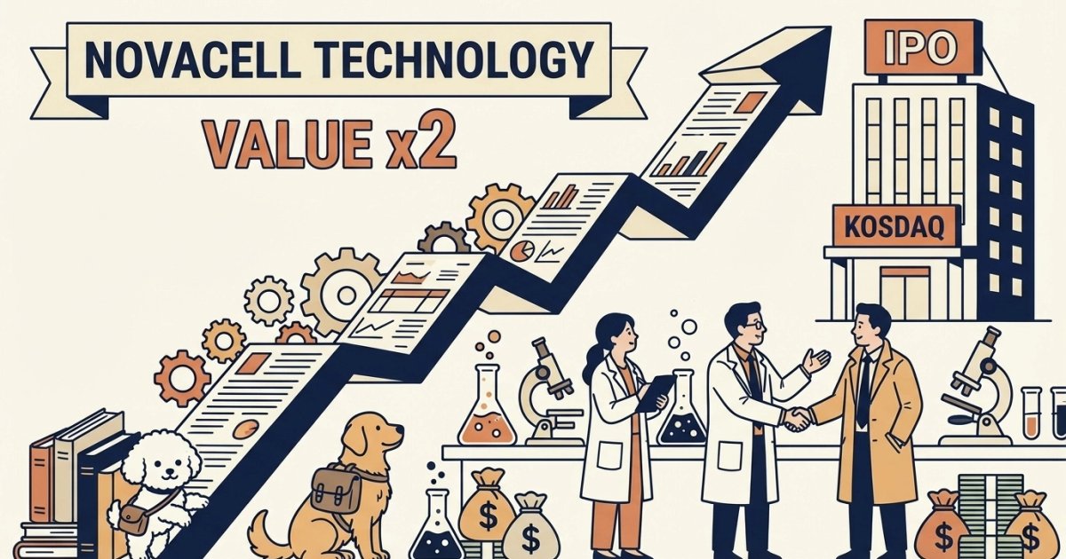 노바셀테크놀로지는 포스텍(POSTECH) 류성호 교수 연구실에서 스핀오프(Spin-off)해 2000년 설립된 바이오 벤처다. 현재 이태훈 대표이사가 경영을 총괄하고 있다. 과거 회사의 기업가치 변천사를 살펴보면, 2012년 동구바이오제약에 인수될 당시 추정 기업가치는 약 237억 원 수준이었다.