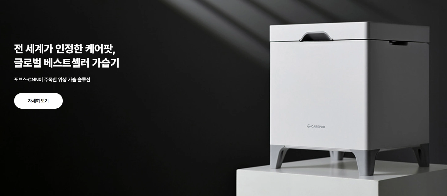 2018년 정식 론칭된 프리미엄 위생 가전 브랜드 '케어팟'은 100℃ 이상 고온 스팀의 화상 위험을 없앤 약 40℃ 저온 가열 방식을 적용했으며, 가습 종료 후 버튼 한 번으로 내부를 약 70℃에서 자동 살균해 세균을 99.9% 제거하는 특허 기술을 담았다. 특히 3초면 끝나는 분리 세척 설계로 기존 가열식 가습기들의 가장 큰 단점이었던 세척 문제를 완벽히 해결했다.