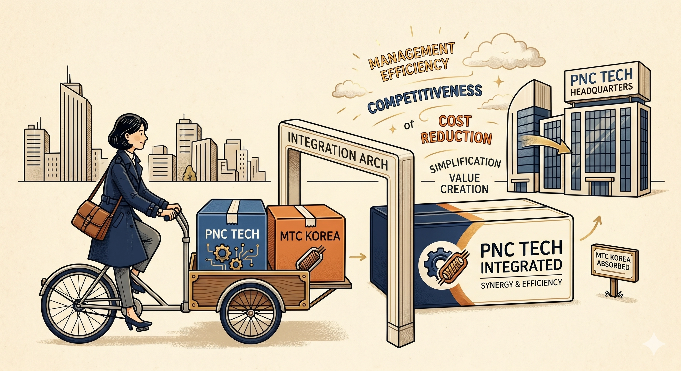 코스닥 상장사 피앤씨테크가 지분 100%를 보유한 종속회사 엠티씨코리아를 흡수합병한다.