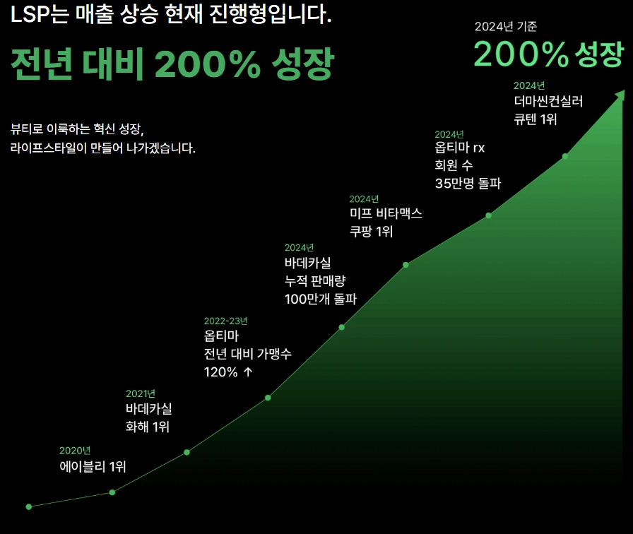 2016년 설립된 라이프스타일프로젝트(LSP)는 화장품 및 헬스케어 영역을 아우르며 공격적인 외형 확장을 이어가고 있는 기업이다. 40여 년 전통의 전국 850여 개 약국 체인을 보유한 '옵티마(옵티마케어)'를 합병한 데 이어, 최근에는 35만 명의 고객을 보유한 뷰티 헬스케어 플랫폼 '스킨알엑스(skin rx)'를 주식교환 방식으로 인수하며 온·오프라인을 넘나드는 뷰티·헬스케어 생태계를 구축하고 있다.